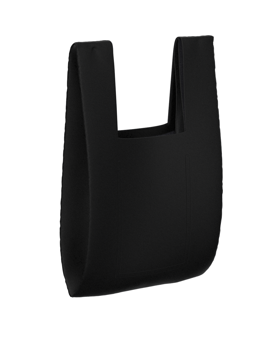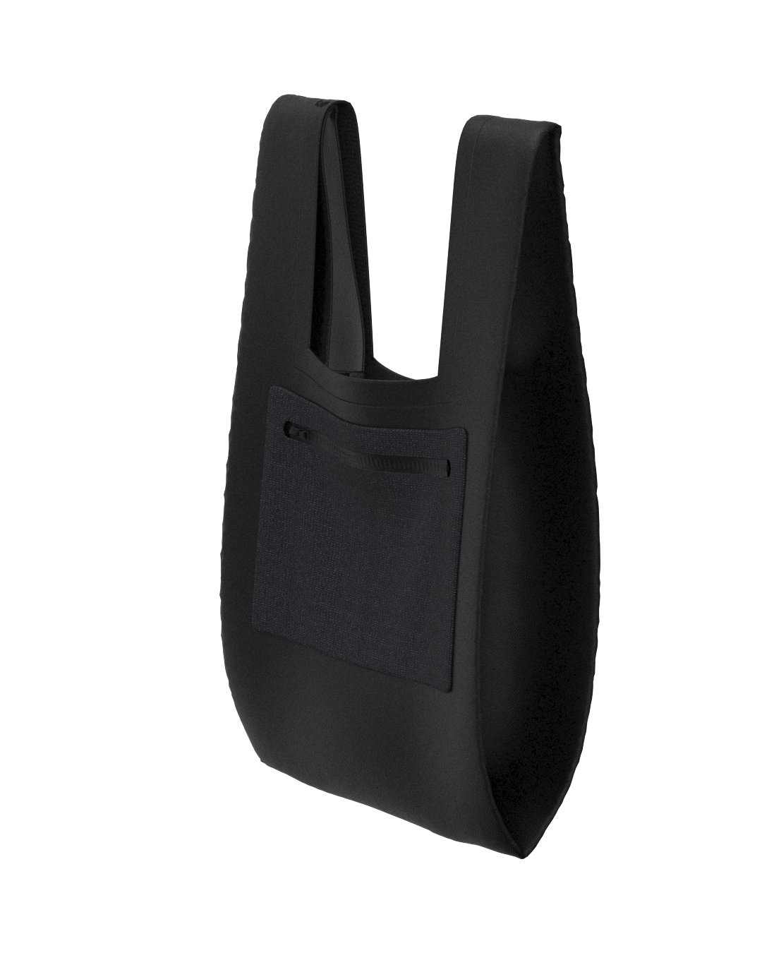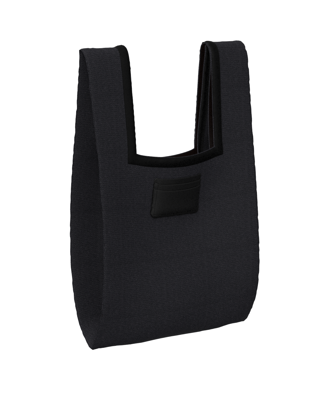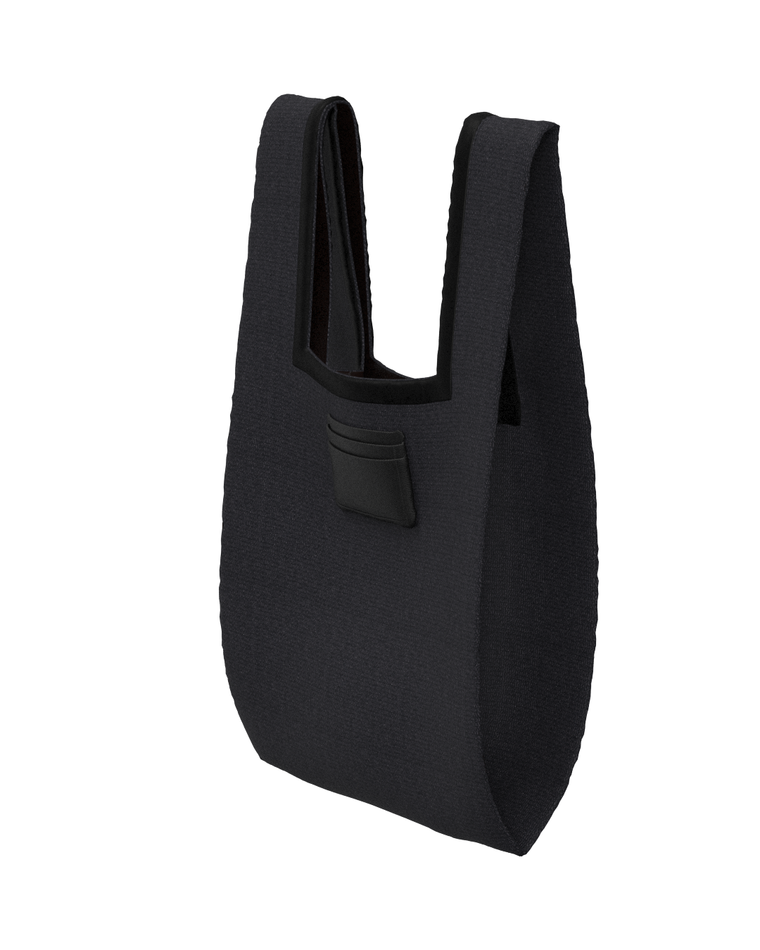 This Grocery bag that can be folded into the attached small pouch. Pleated construction creates a voluminous bag. Made from Italian 3-layered recycled PES, bonded with backwoven fabric.