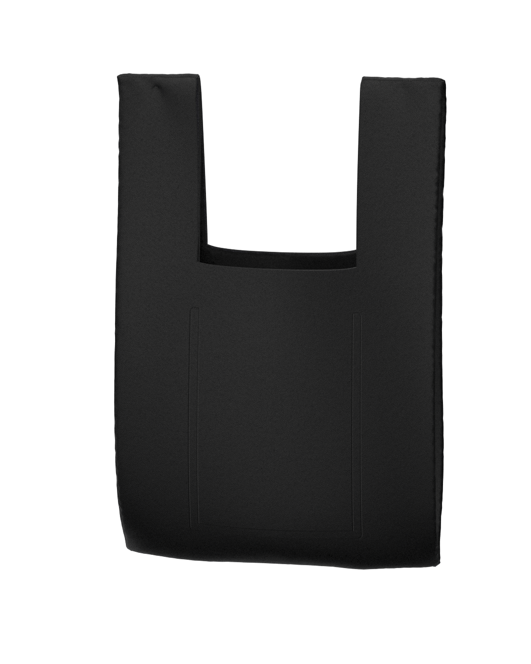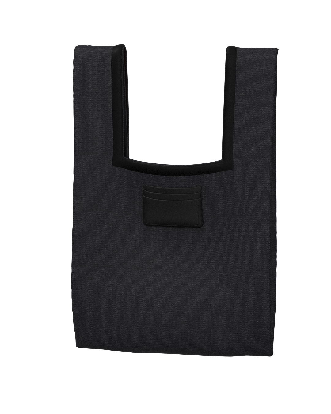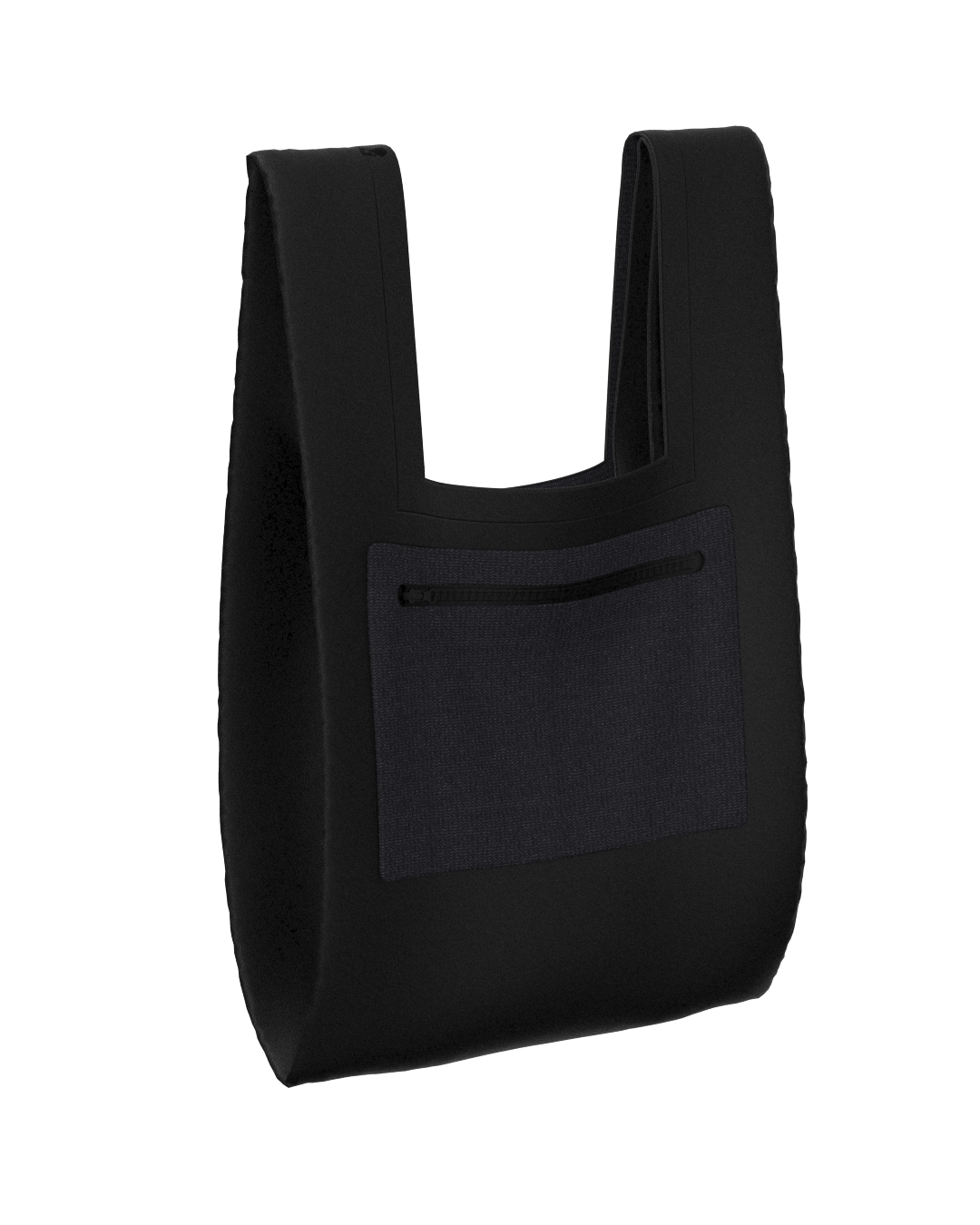 This Grocery bag that can be folded into the attached small pouch. Pleated construction creates a voluminous bag. Made from Italian 3-layered recycled PES, bonded with backwoven fabric.