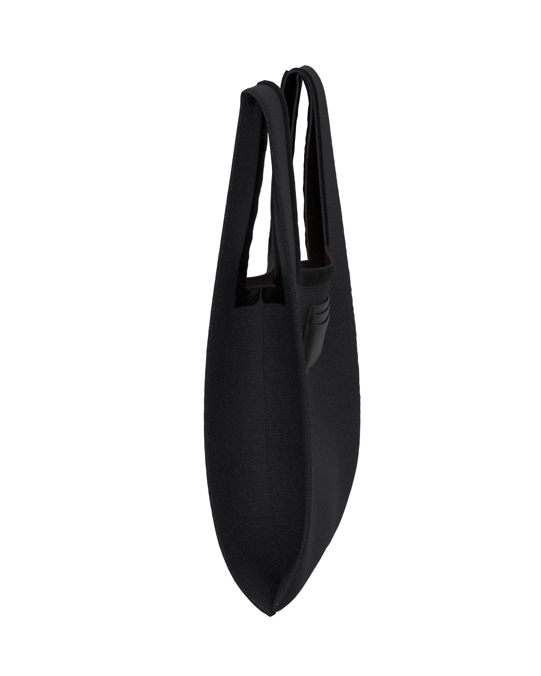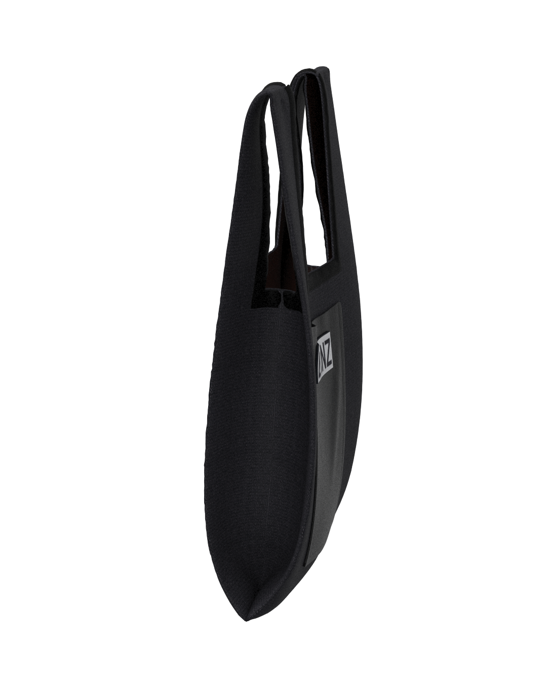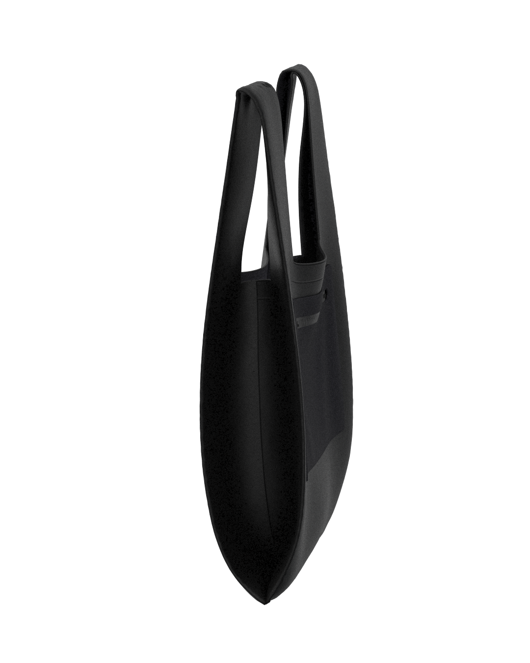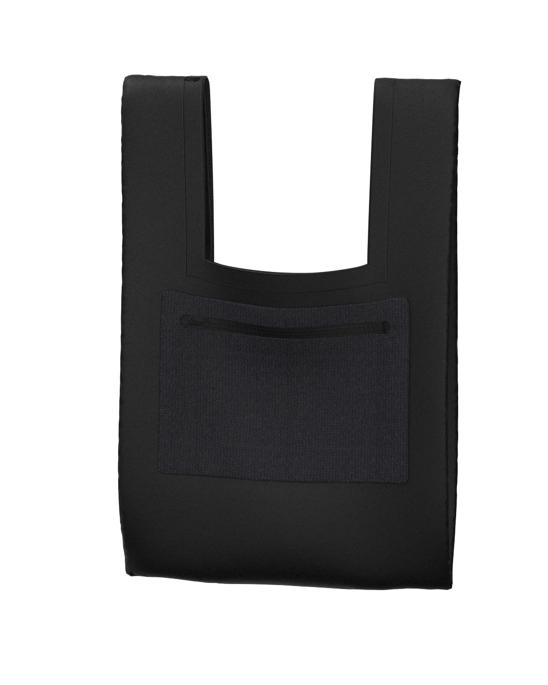This Grocery bag that can be folded into the attached small pouch. Pleated construction creates a voluminous bag. Made from Italian 3-layered recycled PES, bonded with backwoven fabric.