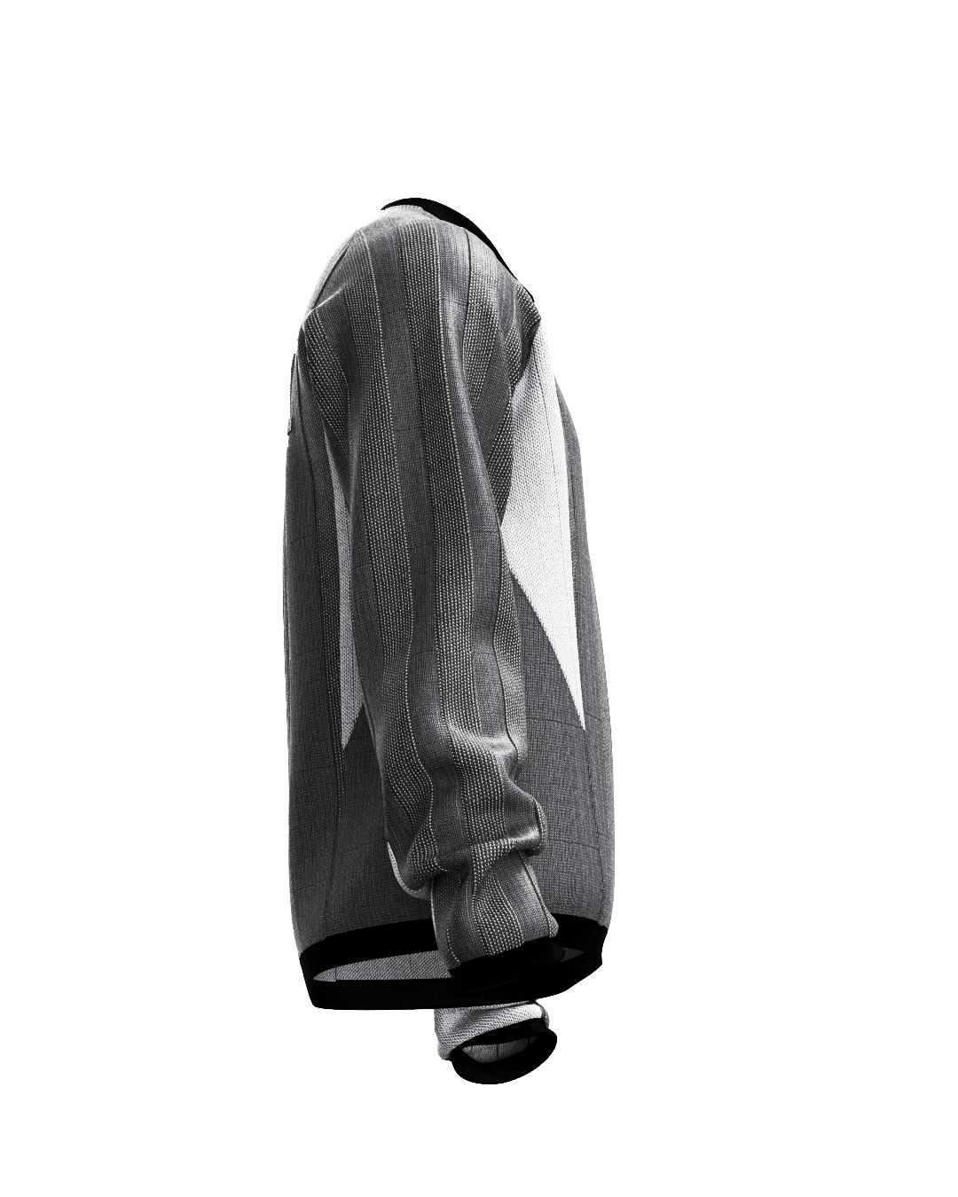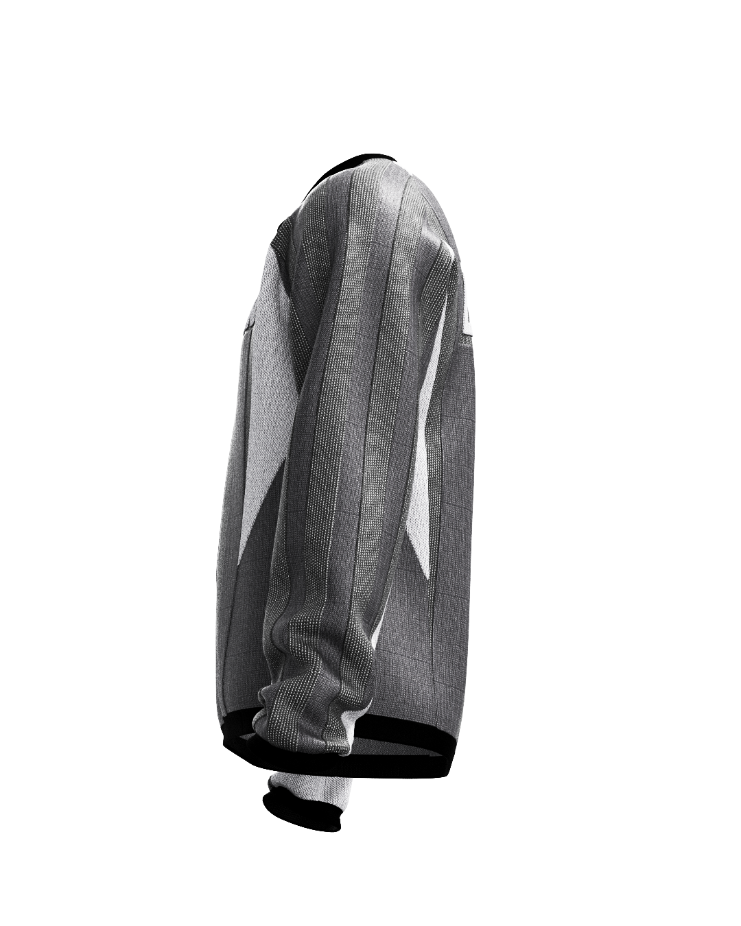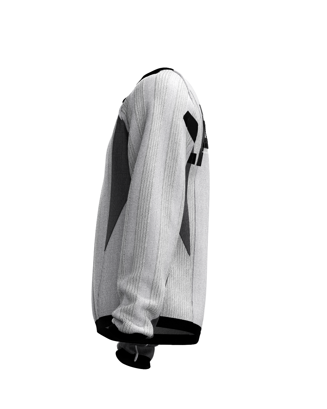 Inspiration by the classic shapes of 2003/2004 football jerseys. This knit features a recto-verso design for versatile styling. With its unique reversible feature, it offers a dynamic look. Comfortable and stylish: A modern take on a nostalgic design.