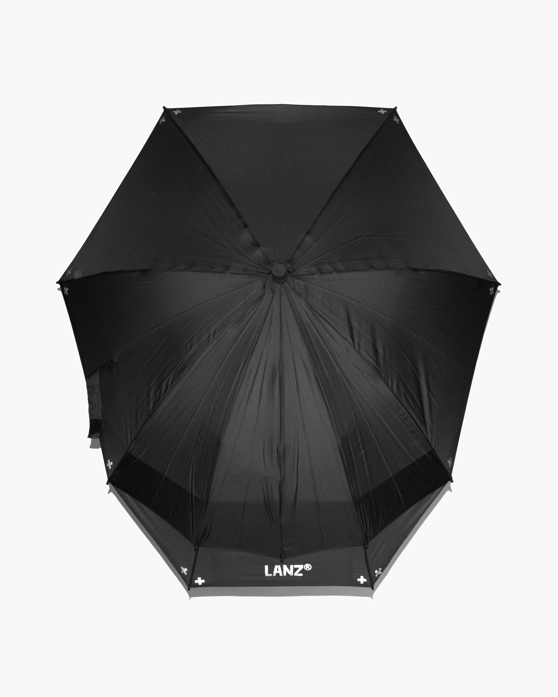 Extended canopy automatically deploys over the back when opened – designed to cover shoulders and backpack.